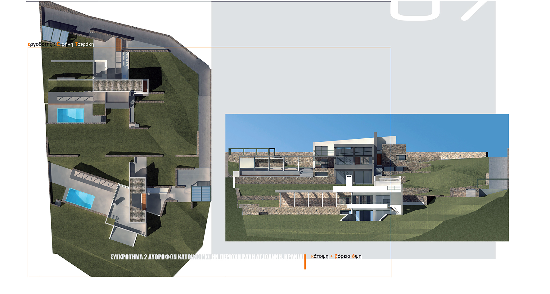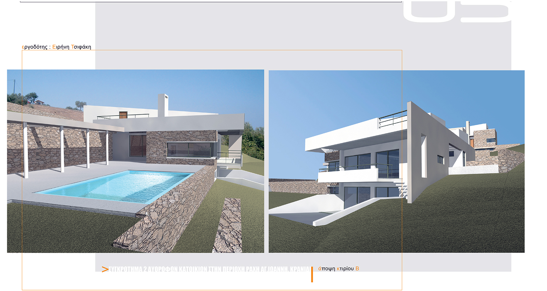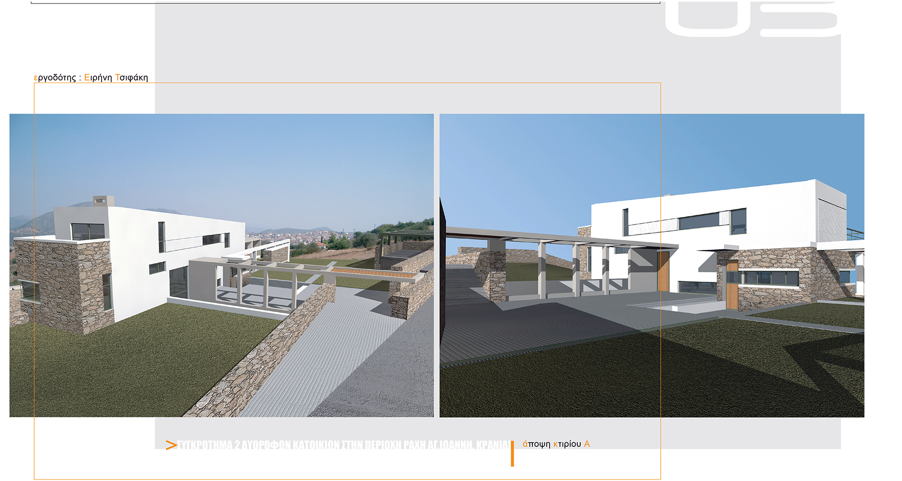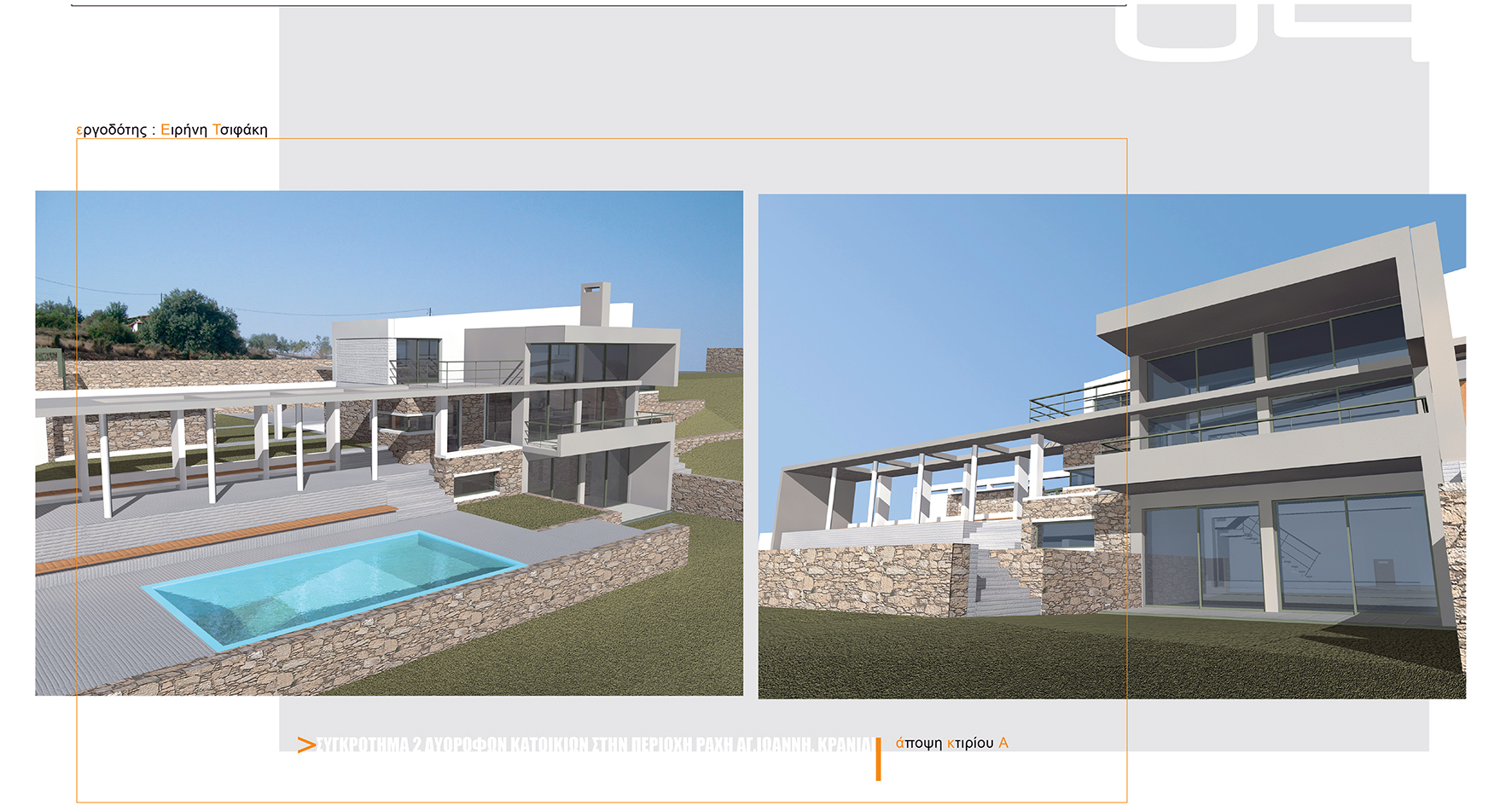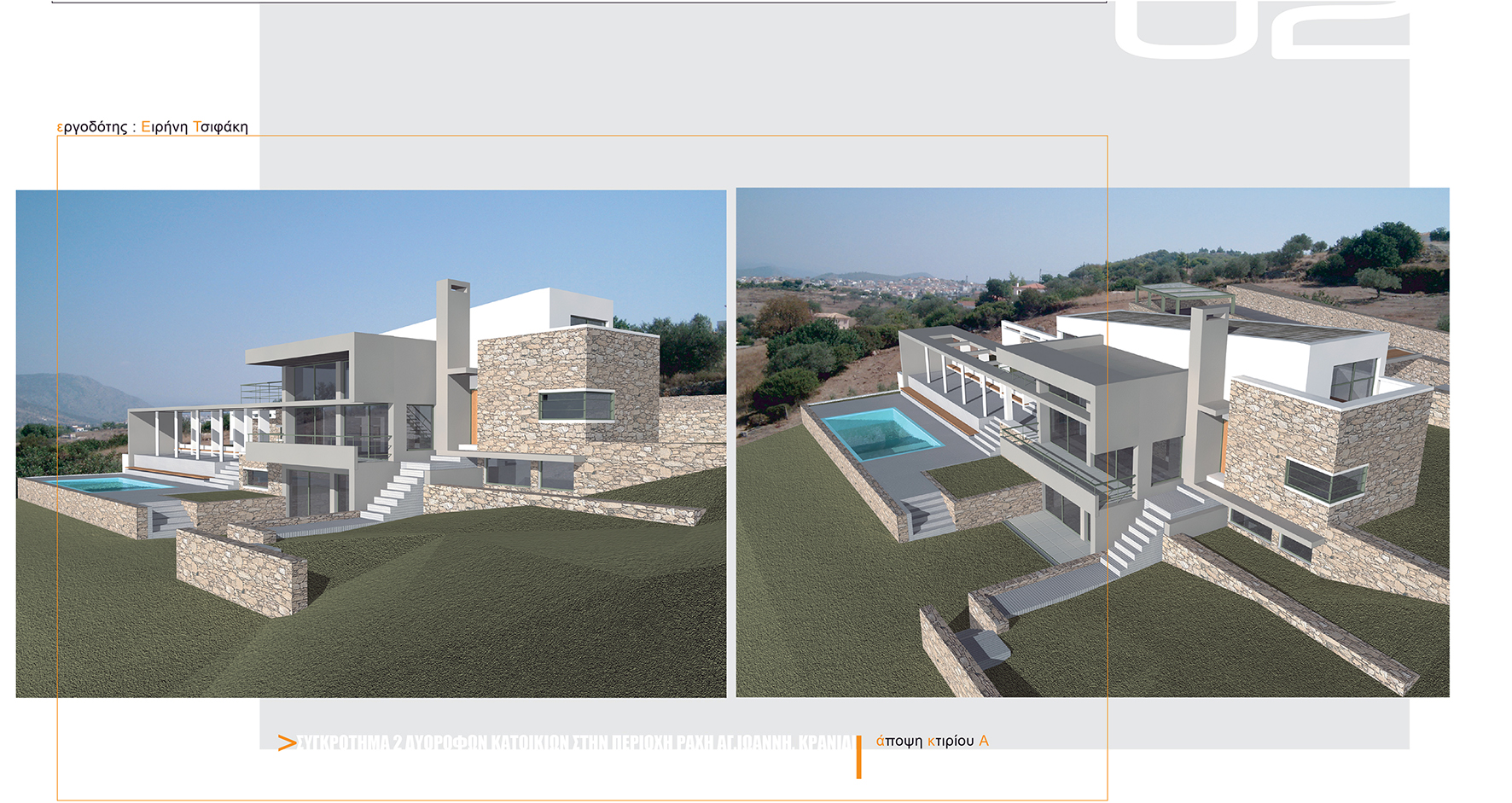 2006 Final study for (2) two houses in Kranidi Municipality, Argolida. Study Architect: Th. Psykakos (3D group AIEN) Construction permit: 02/2007