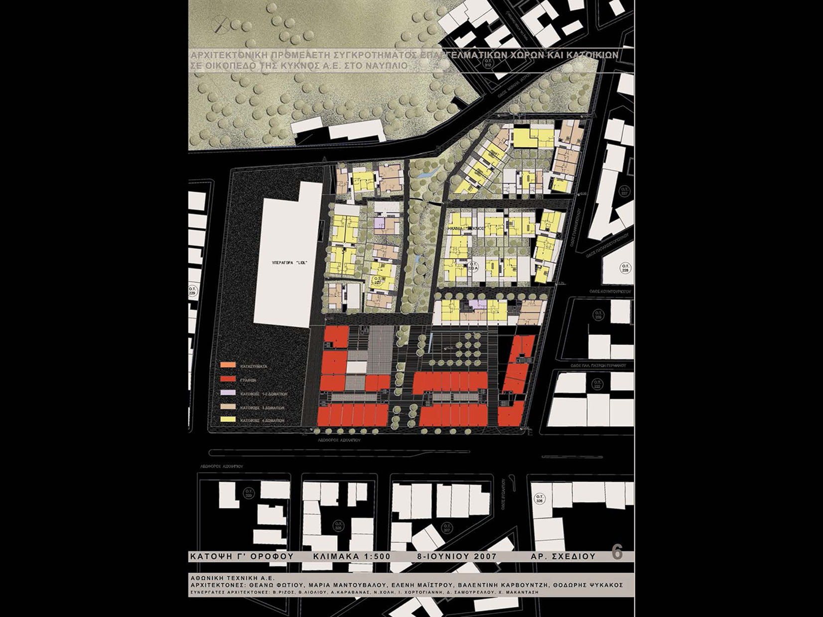 2007 Preliminary study for a complex of residential and commercial premises (36,500 m²) on the plot of the former manufacturing plant of “KYKNOS” S.A., Nafplio Municipality, Argolida.